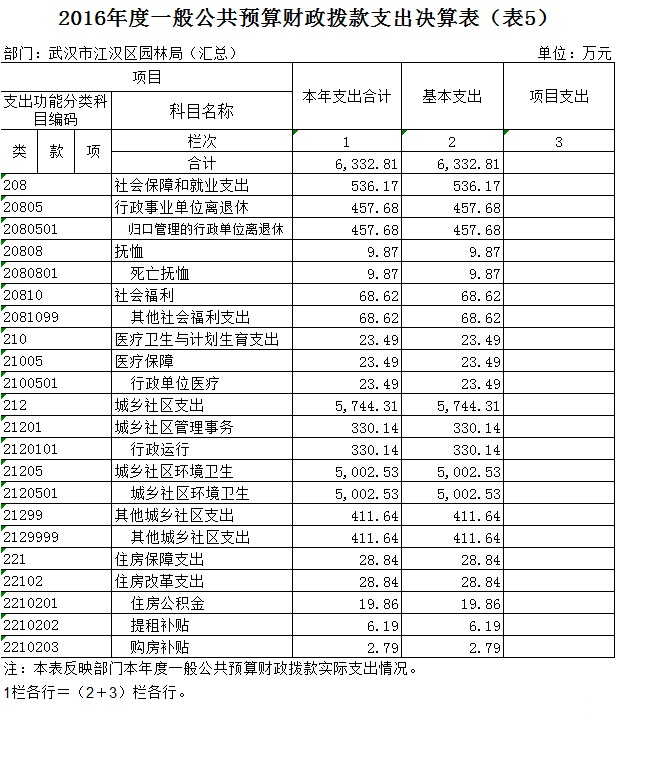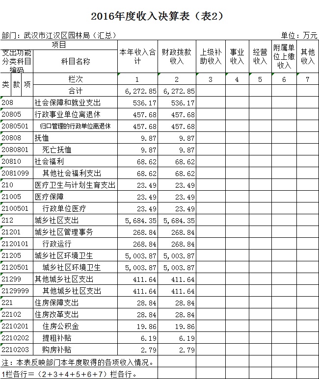| 标 题 | 2016年度武汉市江汉区园林局部门决算 | ||