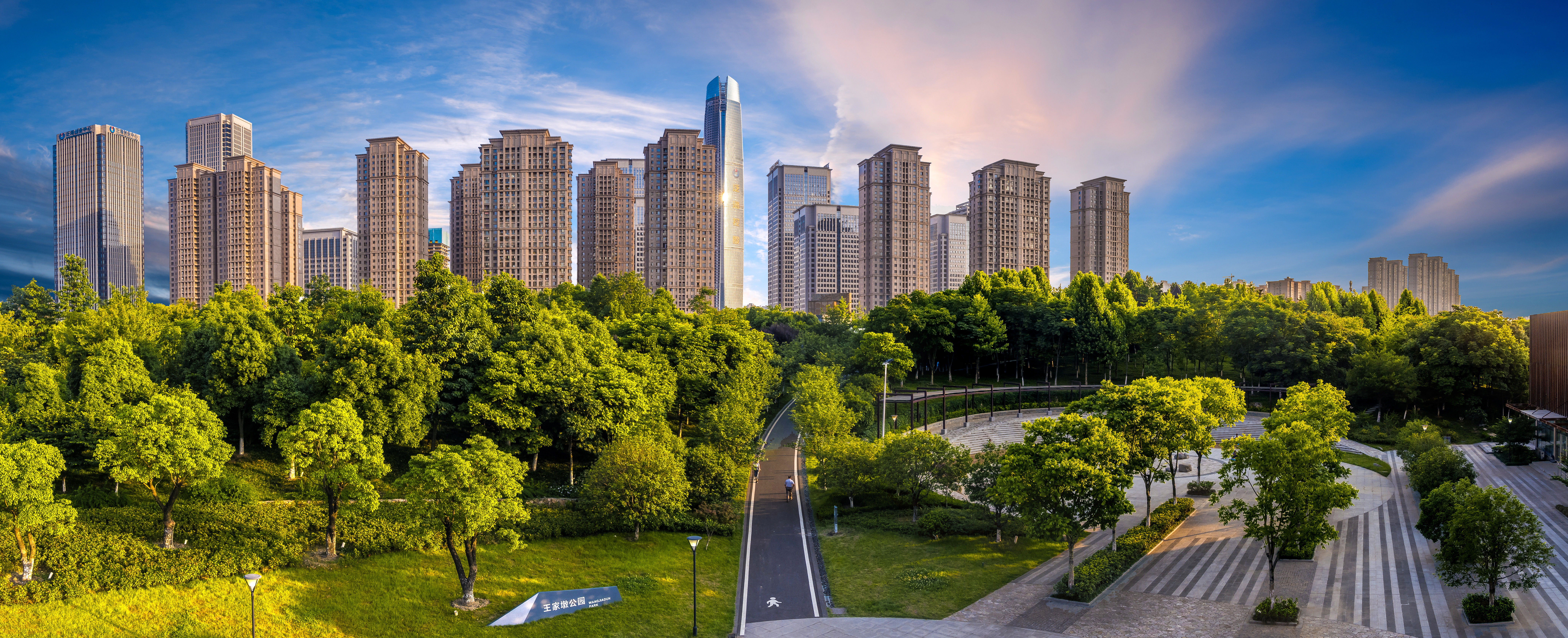 4.王家墩公园位于武汉中央商务区北部,占地约12公顷,是连接启动区、商务核心区生态走廊的重要组成部分。公园以四山两坡为骨架,打造出“山清、水秀、谷迷、瀑惊”的园林意境,是武汉CBD的“ 绿肺”和天然“氧仓”。2022年10月14日,王家墩公园以其优美的生态环境、丰富的植物种类和独特的山体景观入选湖北省2022年“最美城市公园”。