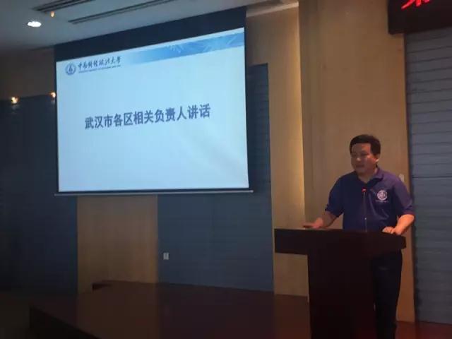 张智勇副区长代表江汉区向与会的校领导、各地方校友会会长、秘书长现场推介投资发展环境和招才招商政策。