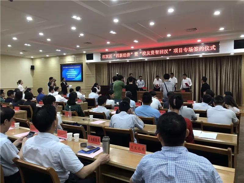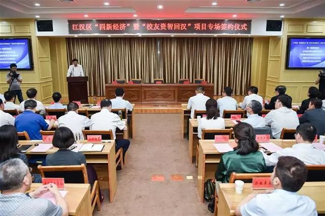 5月25日,江汉区举行“四新经济”暨“校友资智回汉”项目专场签约活动,掀起招商引资助推经济高质量发展新热潮。