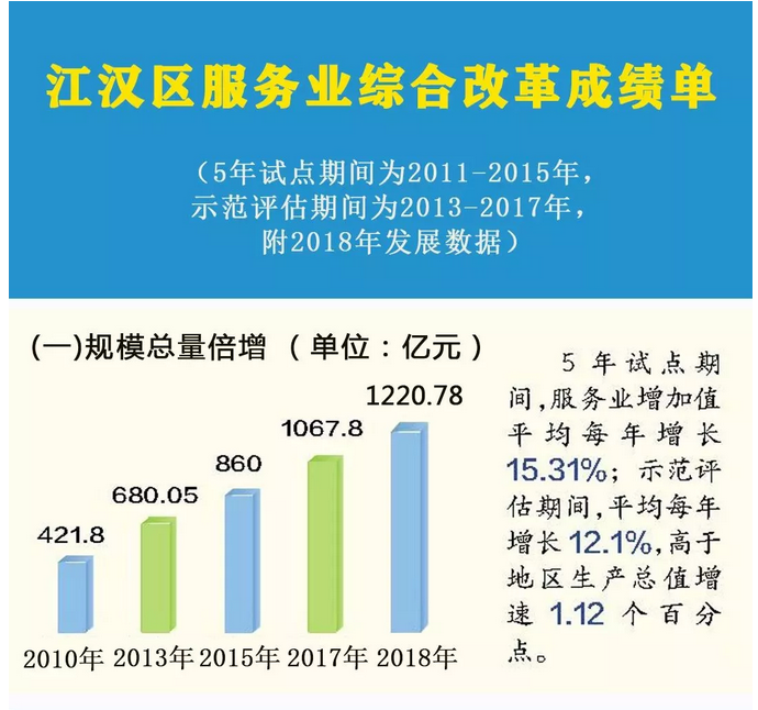 从最开始“国家服务业综合改革试点区”到现在的“国家服务业综合改革示范典型”,江汉区在服务业创新上不断书写新篇章。
