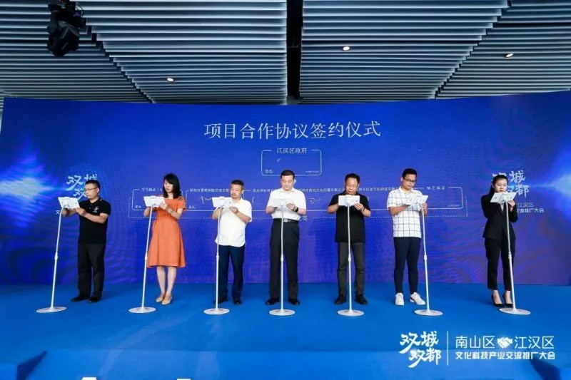 会上,来自深圳南山区高新科技产业园区的20多家科技企业,与江汉区10余家文化创意企业达成11项战略合作协议,迸发文化与科技“跨界融合”的“火花”。