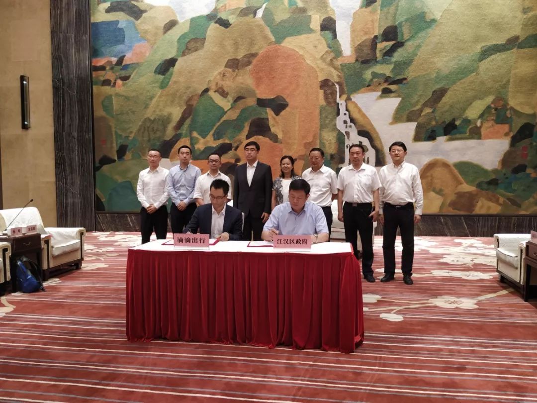 2019年6月17日,武汉市副市长徐洪兰在武汉会议中心会见了来访的滴滴出行科技有限公司首席执行官程维一行,双方就滴滴出行华中区域总部项目进行了沟通交流,会上江汉区政府与滴滴出行签署了《合作框架协议书》。