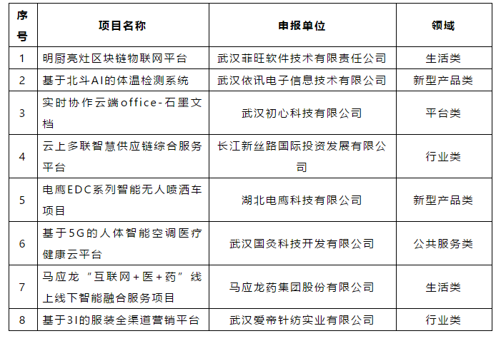 武汉8家企业项目入选“2020年新型信息消费示范项目名单”: