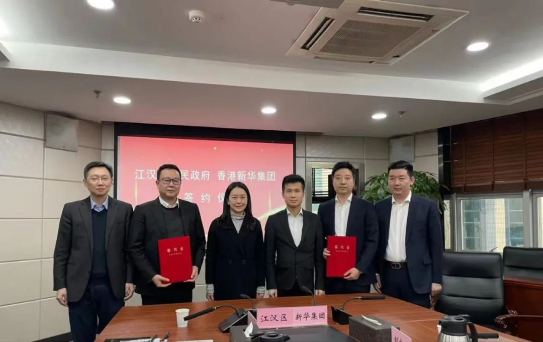 香港新华集团董事蔡捷思一行于2023年11月应邀来汉,与江汉区委书记李湛,区委副书记、区长叶文静进行了会面,双方围绕全面深化战略合作举行座谈并签署合作协议。新华数字健康产业园项目于当月落户我区,项目围绕大健康板块,在医疗设备、康复医疗、检测实验等领域,通过引入上市公司的创新产业引领项目,培育大健康产业集聚区,推动我区大健康产业发展。