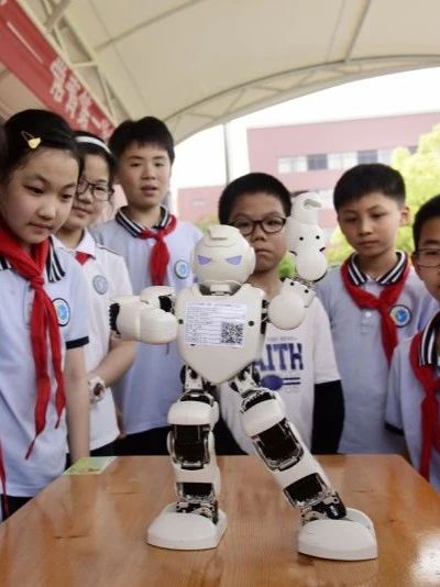 江汉区小学生近距离感受优必选人形机器人魅力。