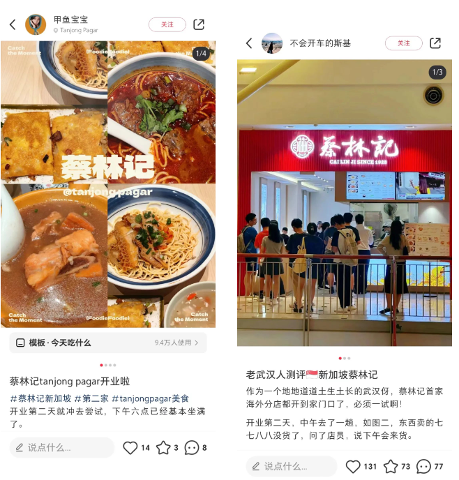 据了解,在门店“出海”前,蔡林记的速食热干面已登陆各大海外电商平台,未来还计划在东南亚、澳洲、北美等地区继续开设门店。