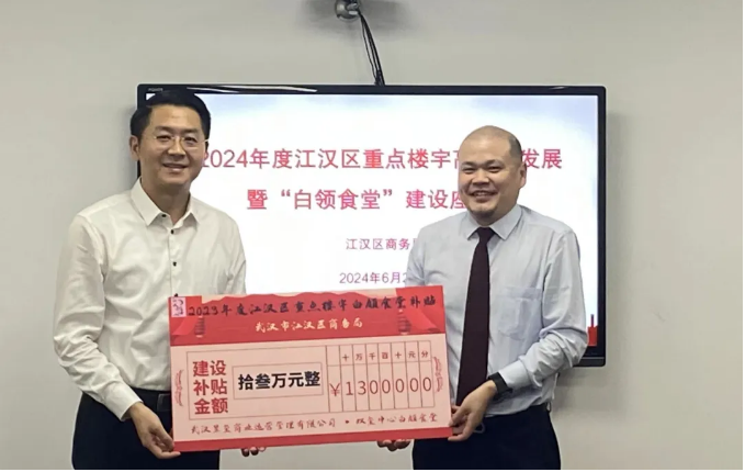 辖区部分重点楼宇和白领食堂的负责人应邀参会。会上,区商务局副局长覃巍宣读了江汉区重点楼宇白领食堂补贴标准及2023年全区白领食堂项目的补贴情况。2023年我区共有双玺中心、武汉中心书城、民生金融中心等8个白领食堂项目共获得补贴143.44万元。2019年起,瞄准白领人群“就近有饭吃”“平价吃得好”的需求,江汉区在办公楼宇、园区等白领集中区域,鼓励、引导物业方自建或引入白领食堂,五年来我区先后投入591.48万元助力辖区楼宇白领食堂的建设和运营,不仅解决了入驻员工的吃饭难题、提升了楼宇品质,白领食堂也成为吸引企业入驻的楼宇招商亮点和优势之一。
