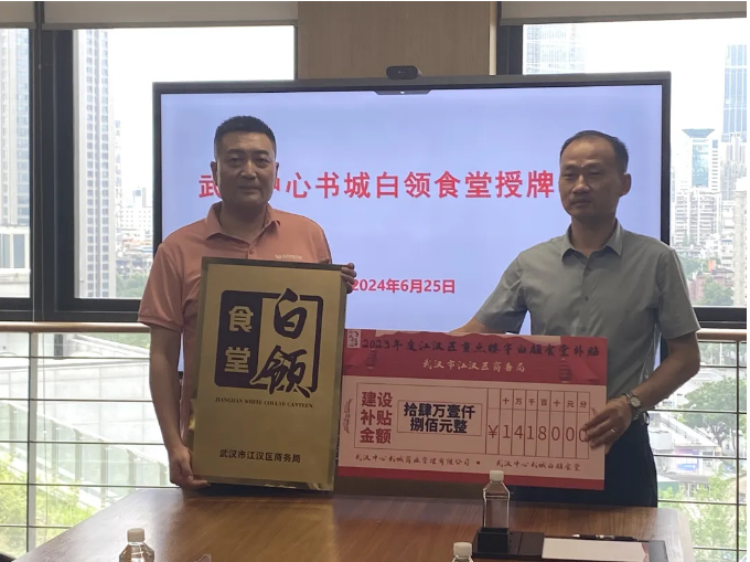 区商务局领导为双玺中心、武汉中心书城颁发2023年度“白领食堂”补贴