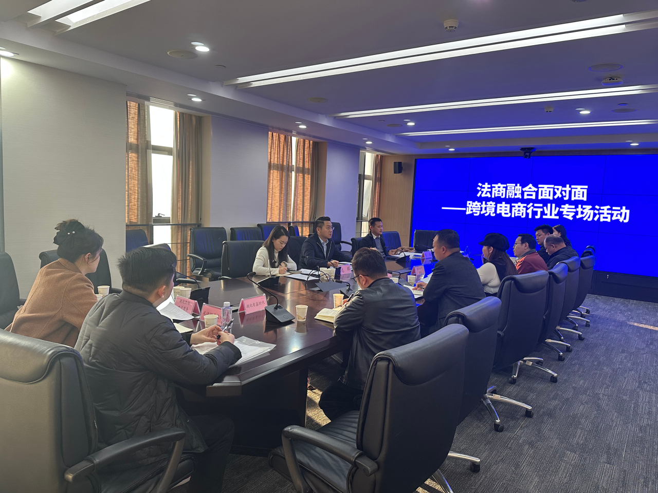 3月10日下午,区商务局、区司法局在武汉中央法务区法治会客厅联合主办“法商融合双周面对面”跨境电商专场活动。区商务局、区司法局有关负责同志,辖区跨境电商产业园运营单位、跨境电商企业代表、四家知名律所代表参会,共商法商融合,护航企业出海。
