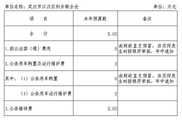 武汉市江汉区妇女联合会2014年“三公”经费(财政拨款)预算数