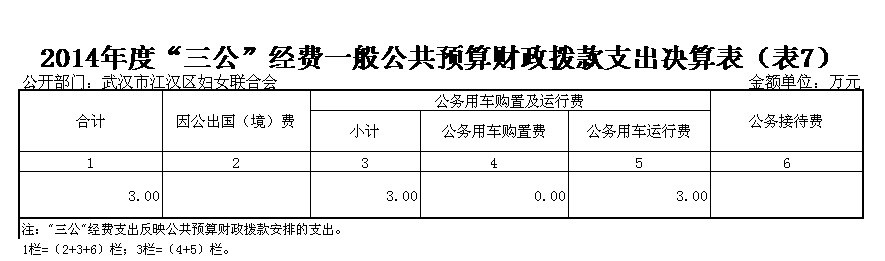 七、2014年度一般公共预算财政拨款“三公”经费支出决算表(表7)