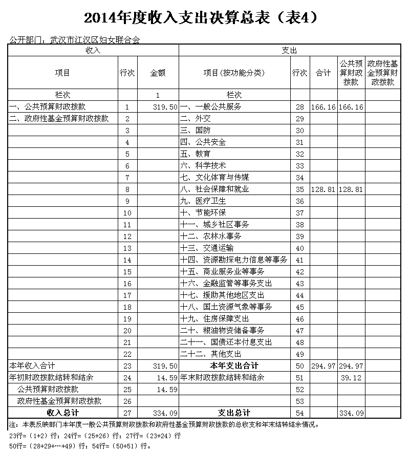 第三部分、武汉市江汉区妇女联合会2014年度部门决算表