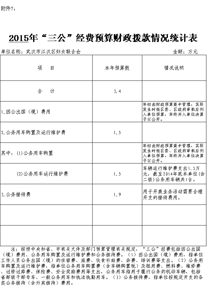 江汉区妇女联合会2015年“三公”经费财政拨款预算情况说明