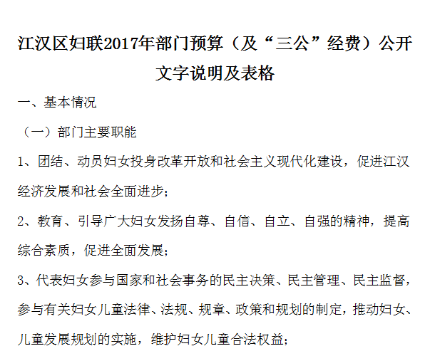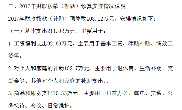 2017年部门预算(及“三公”经费)公开文字说明及表格