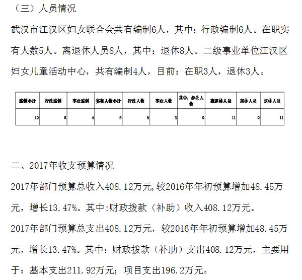武汉市江汉区妇女联合会2016年度部门决算情况说明