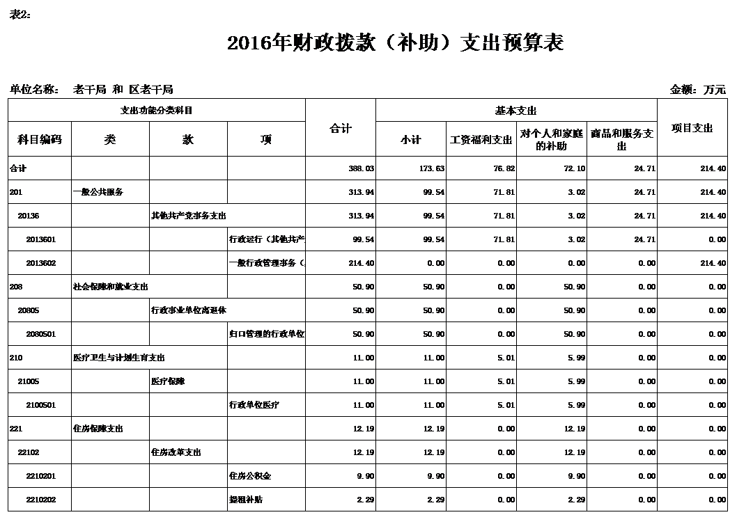 2016年财政拨款(补助)预算数388.03万元,安排情况如下: