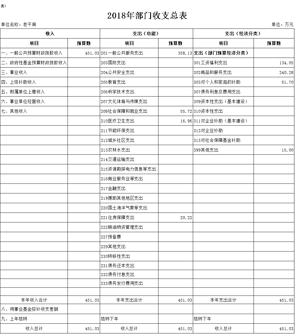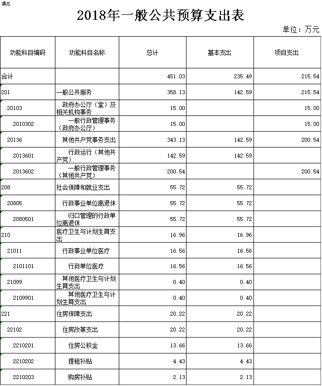 2018年一般公共预算财政拨款(补助)预算数451.03万元,安排情况如下: