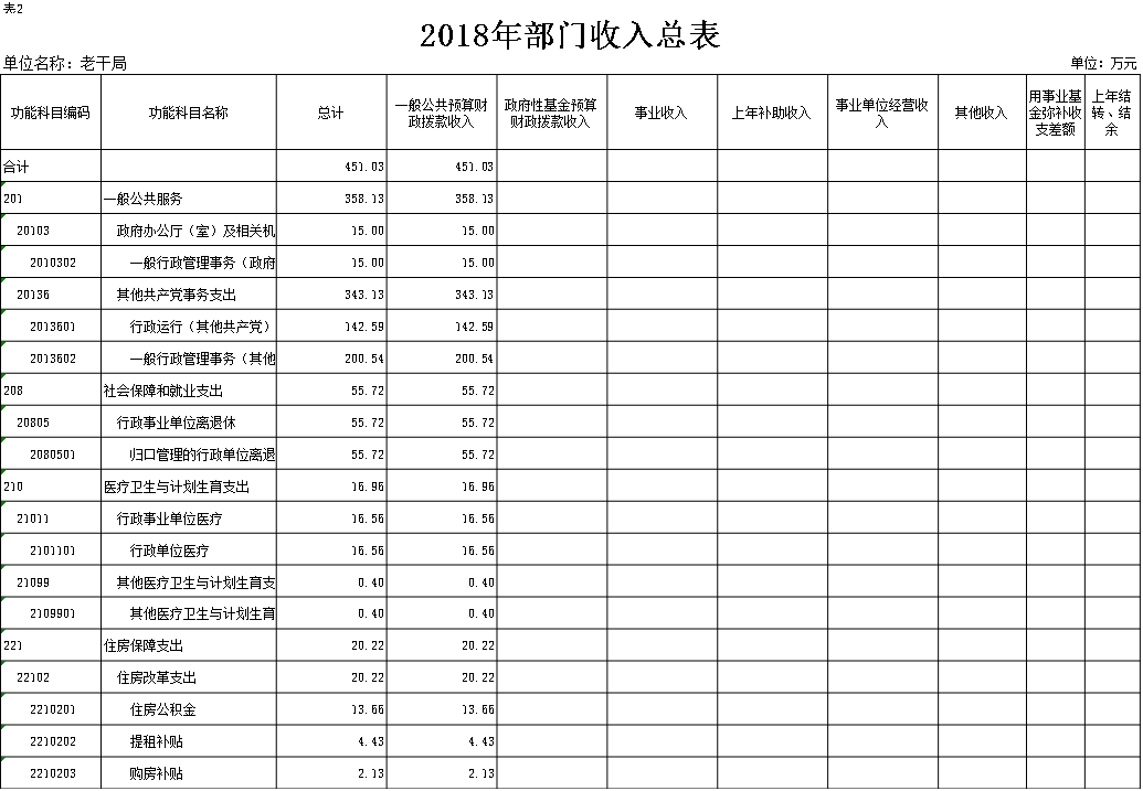 表2.2018年部门收入总表