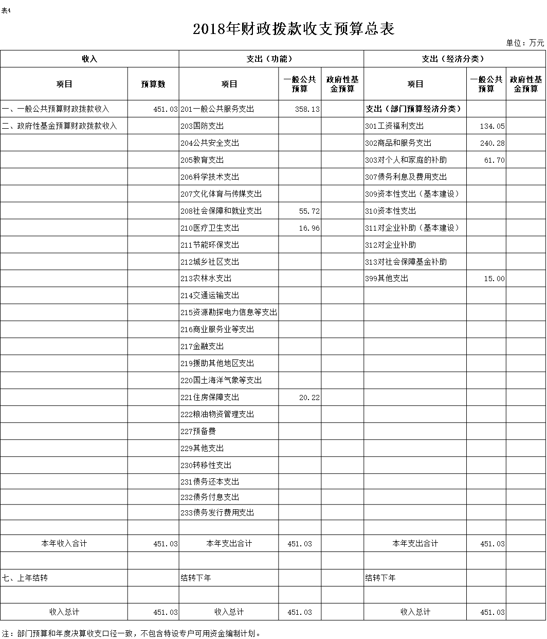表4.2018年财政拨款收支预算总表
