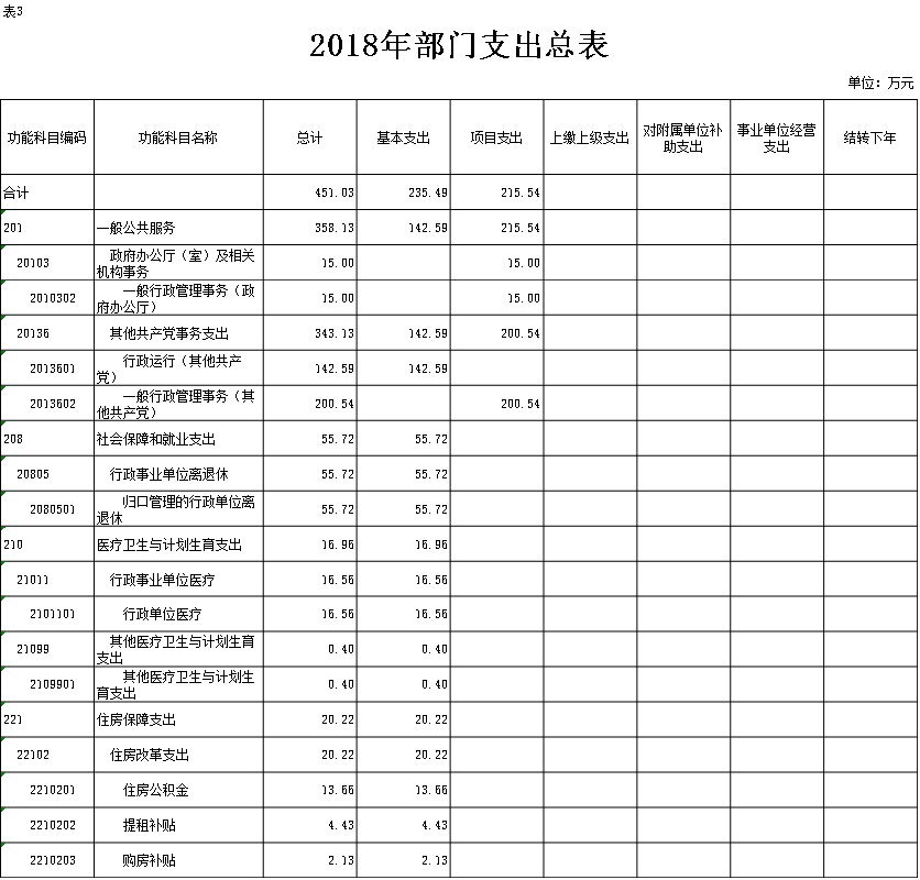 表3.2018年部门支出总表
