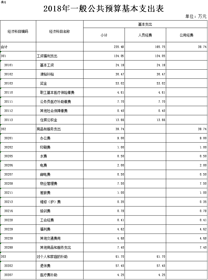 表6.2018年一般公共预算基本支出表