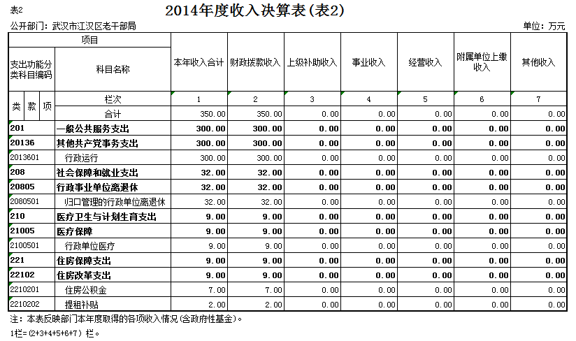 第三部分、武汉市江汉区老干部局2014年度部门决算表