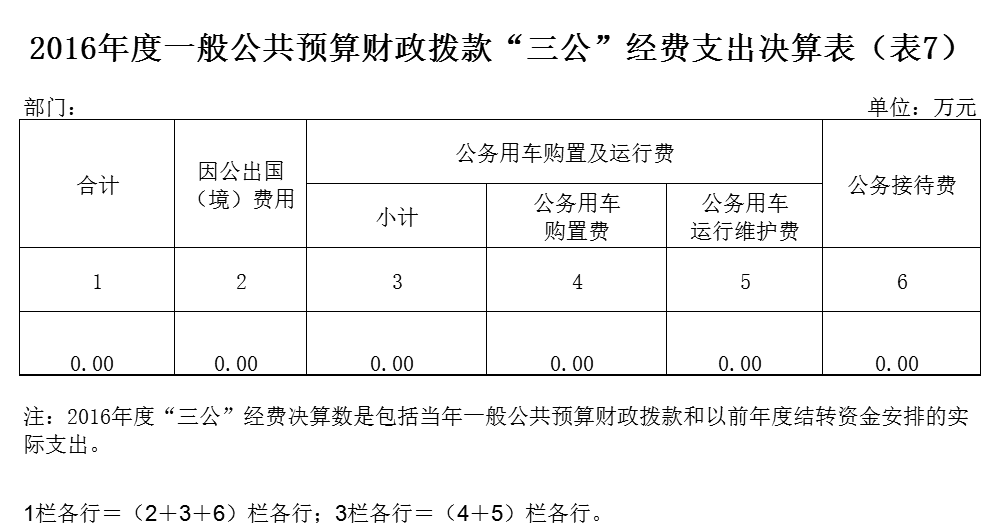 2016年度"三公"经费财政拨款年度预算为 0 万元,支出决算为 0 万元,完成预算的 100 %。