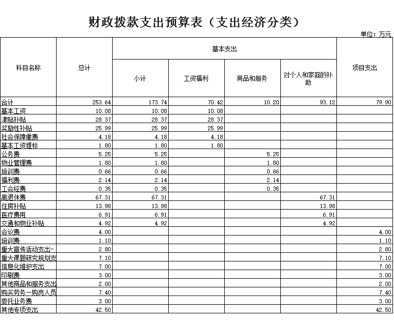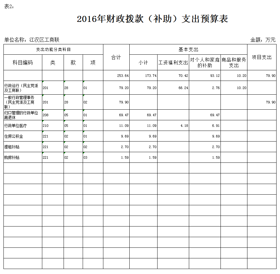 2016年财政拨款(补助)预算数253.64万元,安排情况如下: