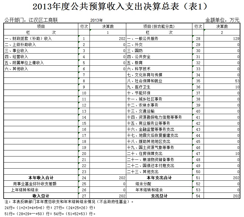 武汉市江汉区工商业联合会2013年度部门决算公开目录