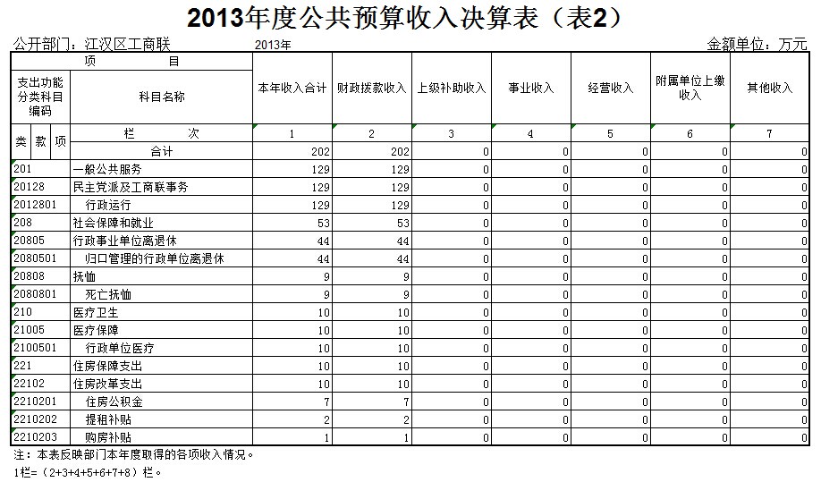 二、武汉市江汉区工商业联合会2013年度公共预算收入支出决算总表