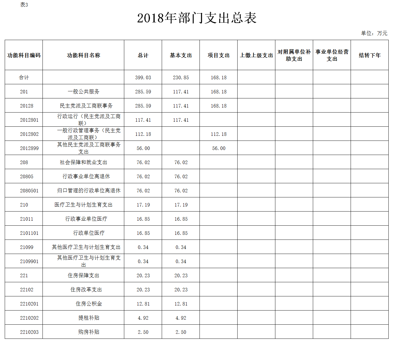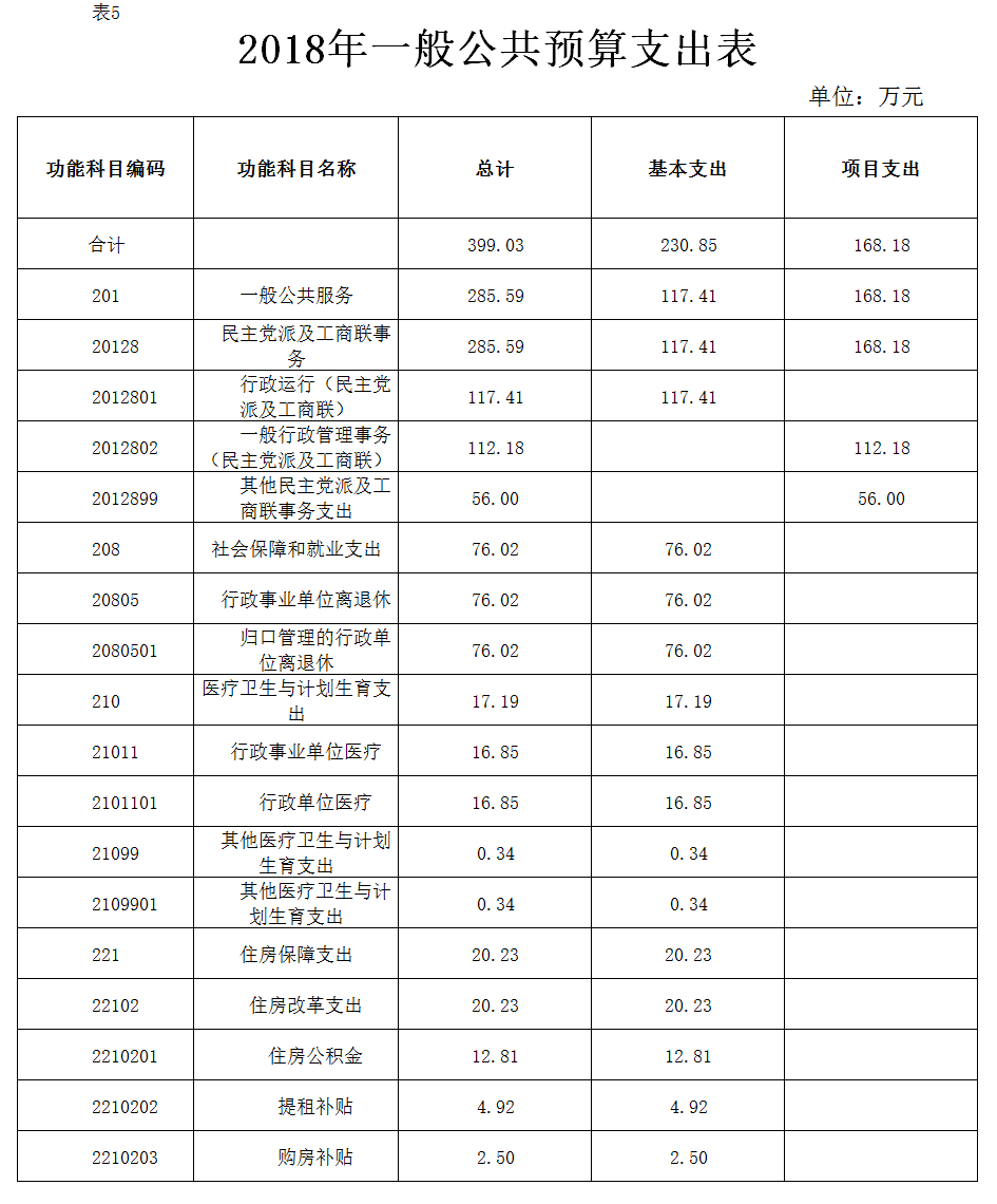 2018年一般公共预算财政拨款(补助)预算数 399.03万元,安排情况如下: