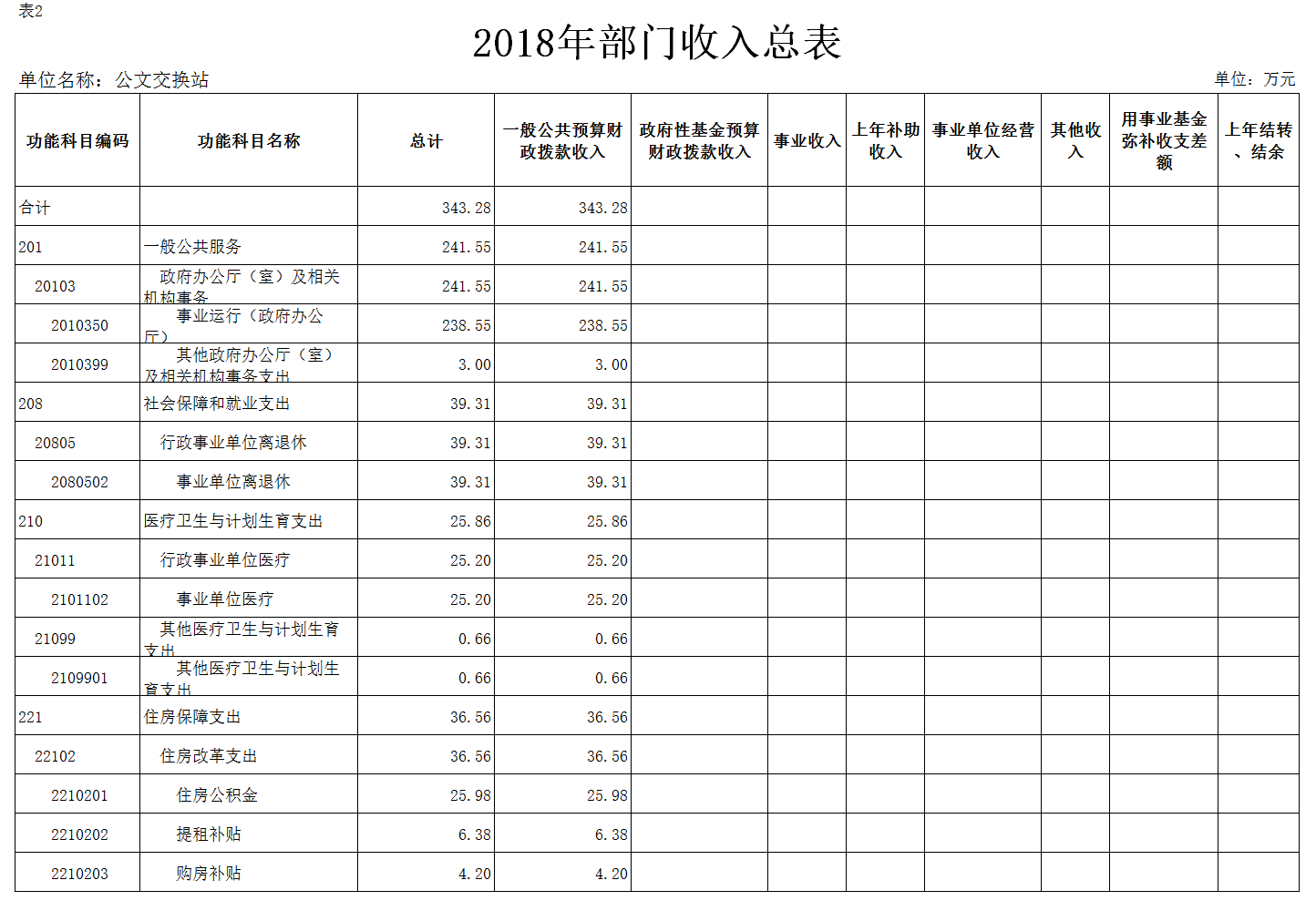 表2.2018年部门收入总表