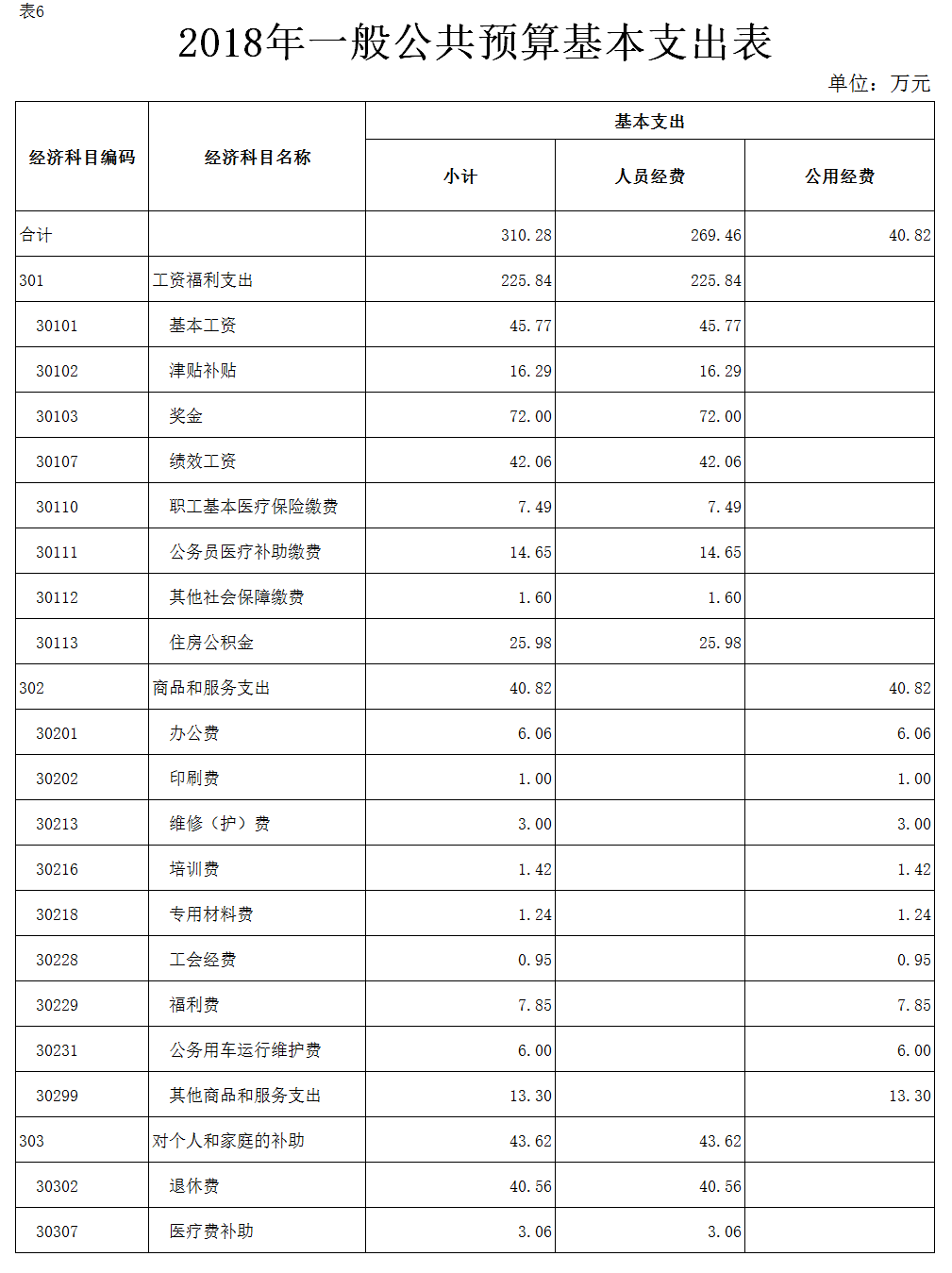 表6.2018年一般公共预算基本支出表