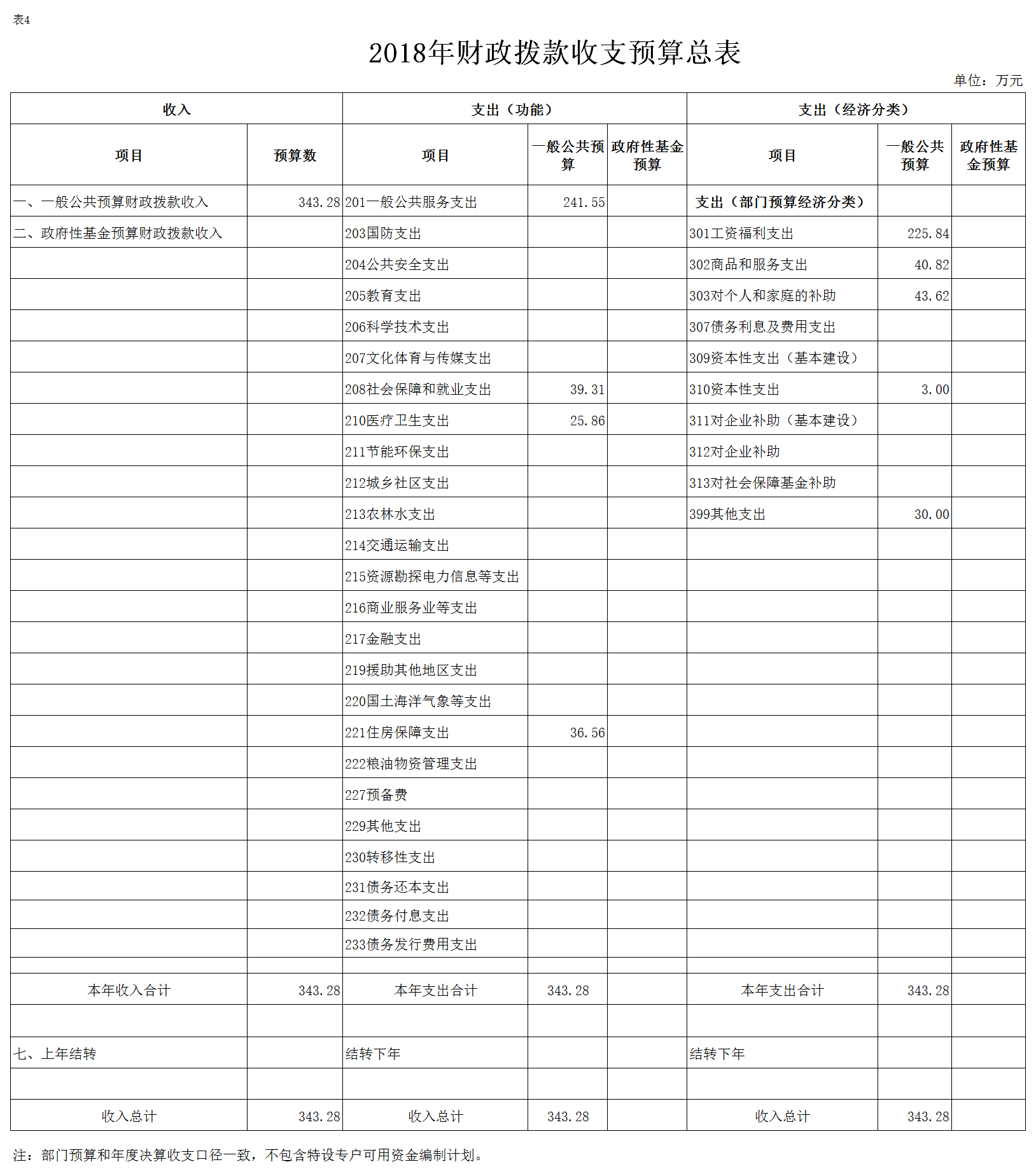 表4.2018年财政拨款收支预算总表