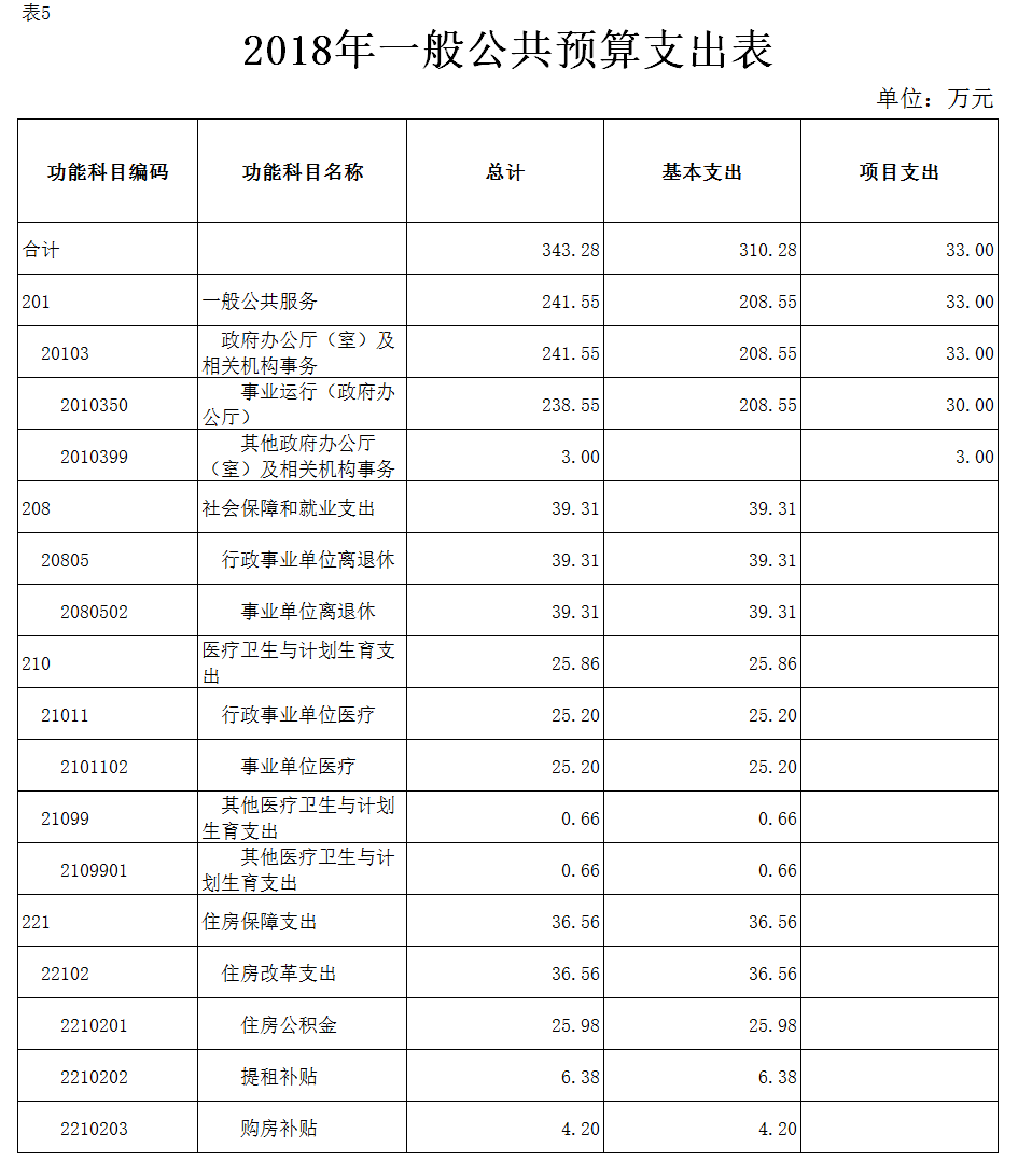 2018年一般公共预算财政拨款(补助)预算数343.28万元,安排情况如下: