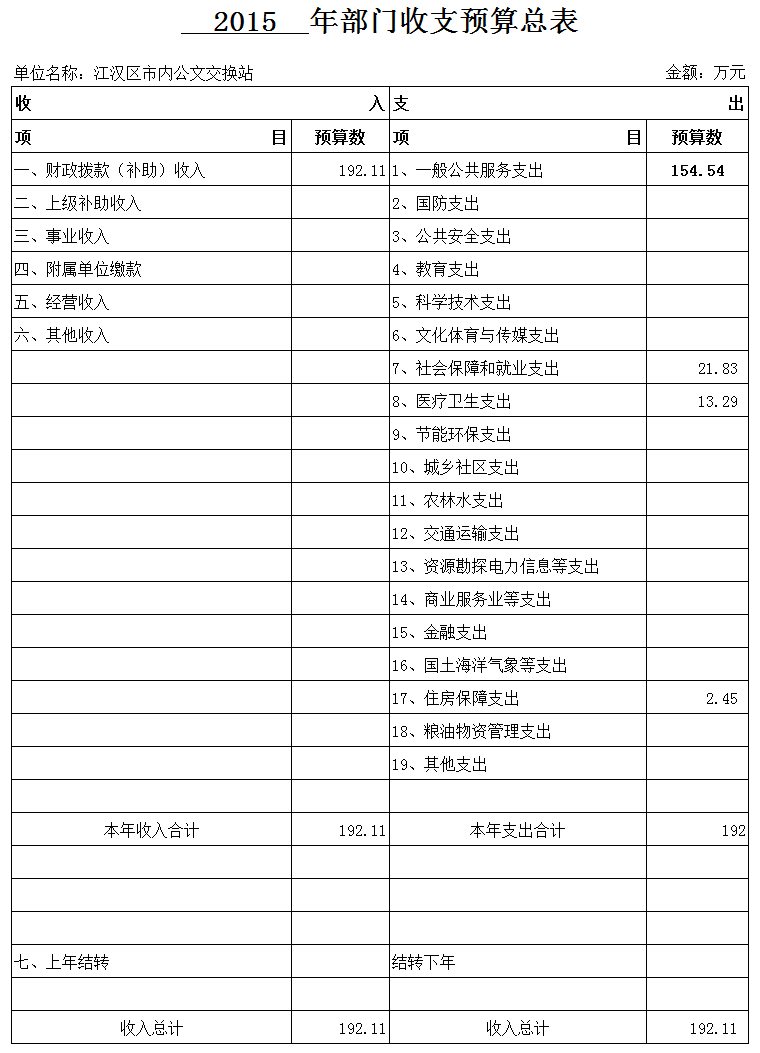 江汉区市内公文交换站2015年财政拨款(补助)支出预算表