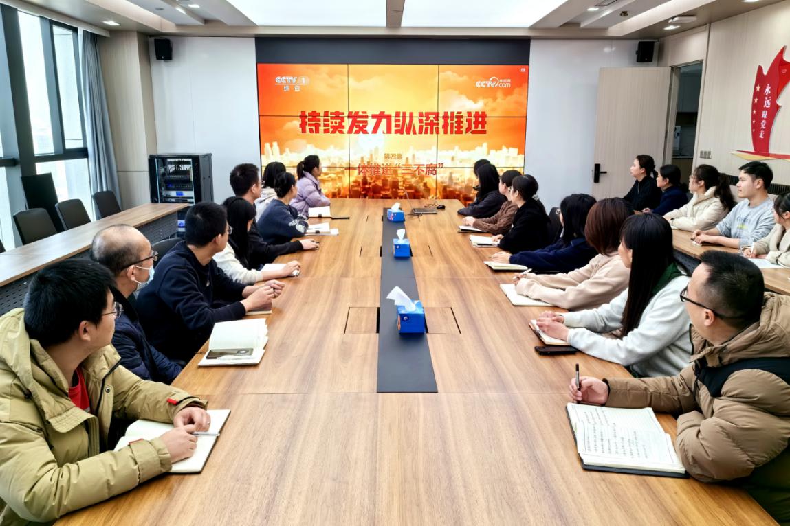 武昌区纪委监委以学习贯彻新修订的《中国共产党纪律处分条例》为契机,推动全区各级党委利用支部主题党日、学习小组等方式开展集中性纪律教育。结合观看警示教育片、召开专题培训会等方式,引导党员干部深学细悟习近平总书记关于党的自我革命的重要思想,拧紧纪律规矩发条,养成遵规守纪的自觉。图为武昌区武汉东湖城市建设集团有限公司组织党员干部观看反腐专题片《持续发力 纵深推进》。