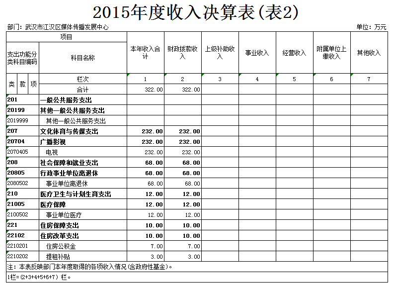 2015年度收入总计322万元,支出总计323万元。与2014年相比,收入增加25万元,增长9 %,主要原因人员经费增加。支出增加30万元,增长10%,主要原因是人员经费增加。