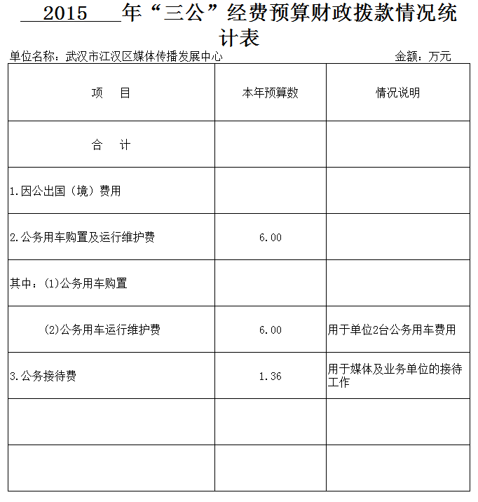 江汉区媒体传播发展中心2015年“三公”经费(财政拨款)预算数