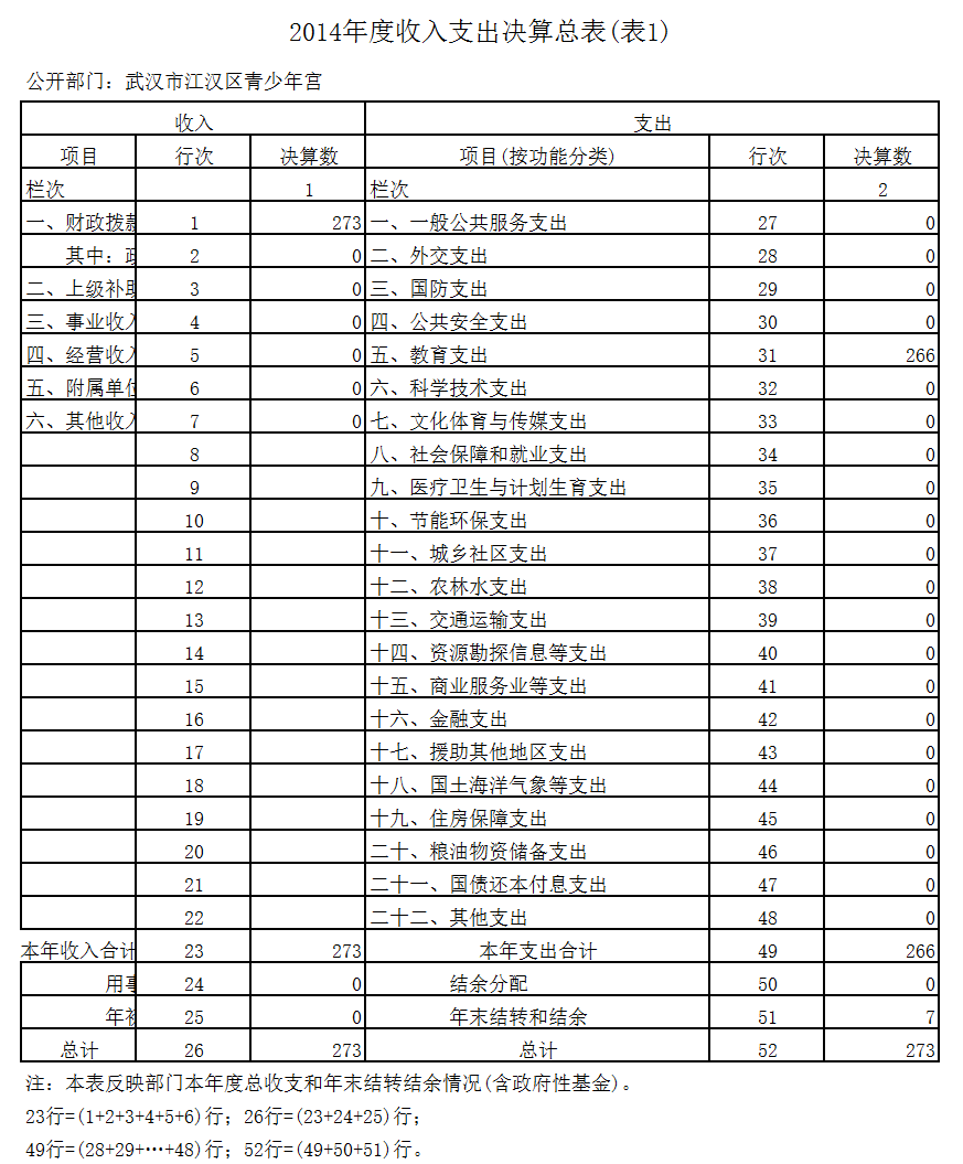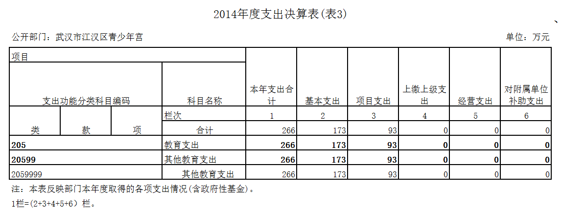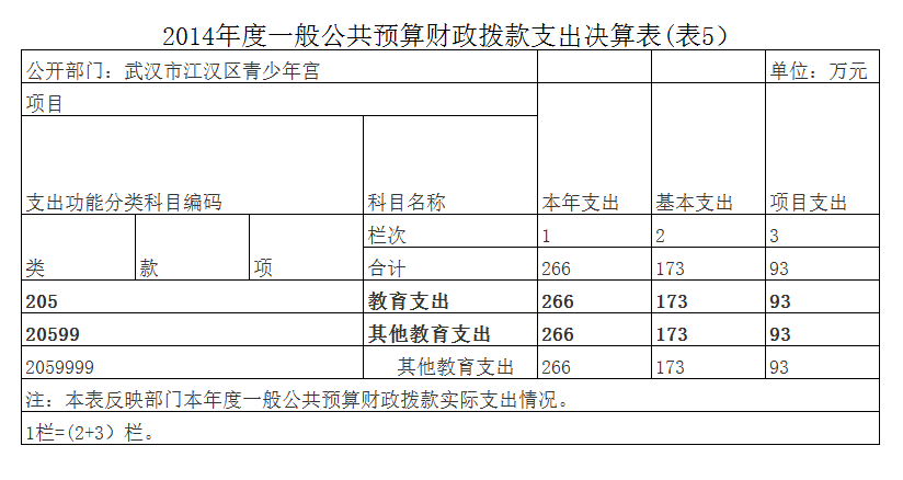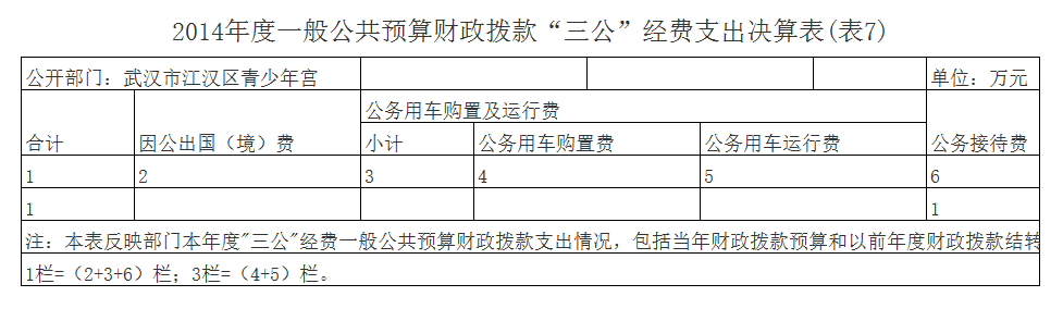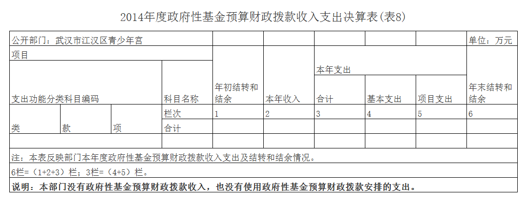 2014年度武汉市江汉区青少年宫部门决算