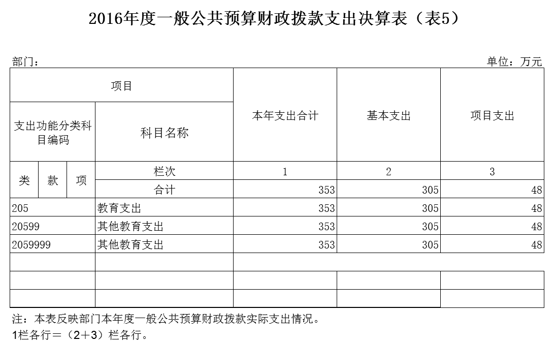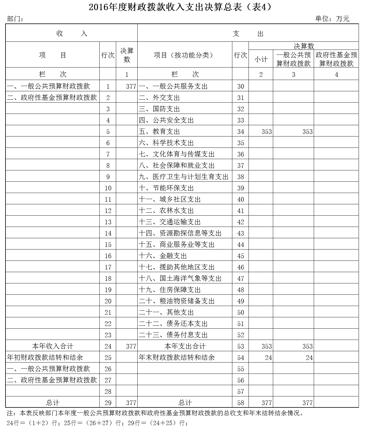 教育支出(类)。年度预算为377万元,支出决算为353万元,完成年度预算的94%。