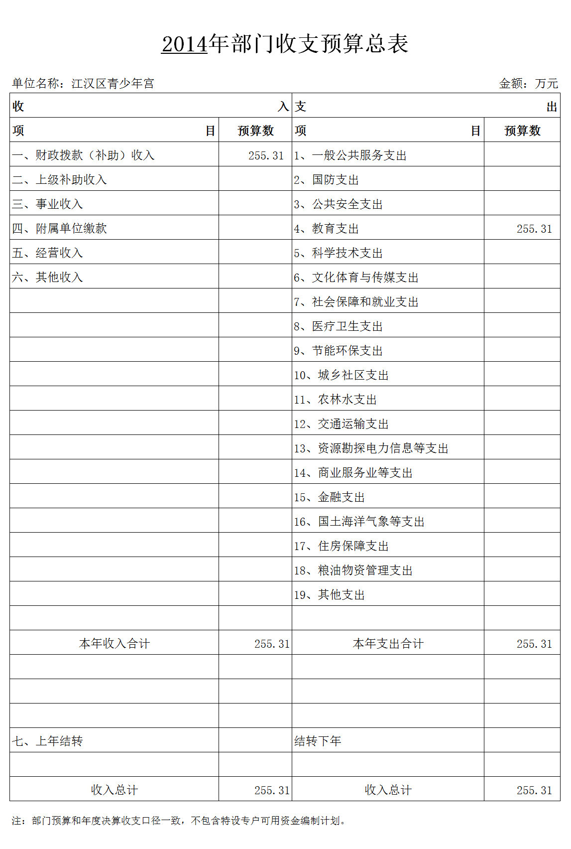 2014年财政拨款(补助)预算数255.31万元,安排情况如下: