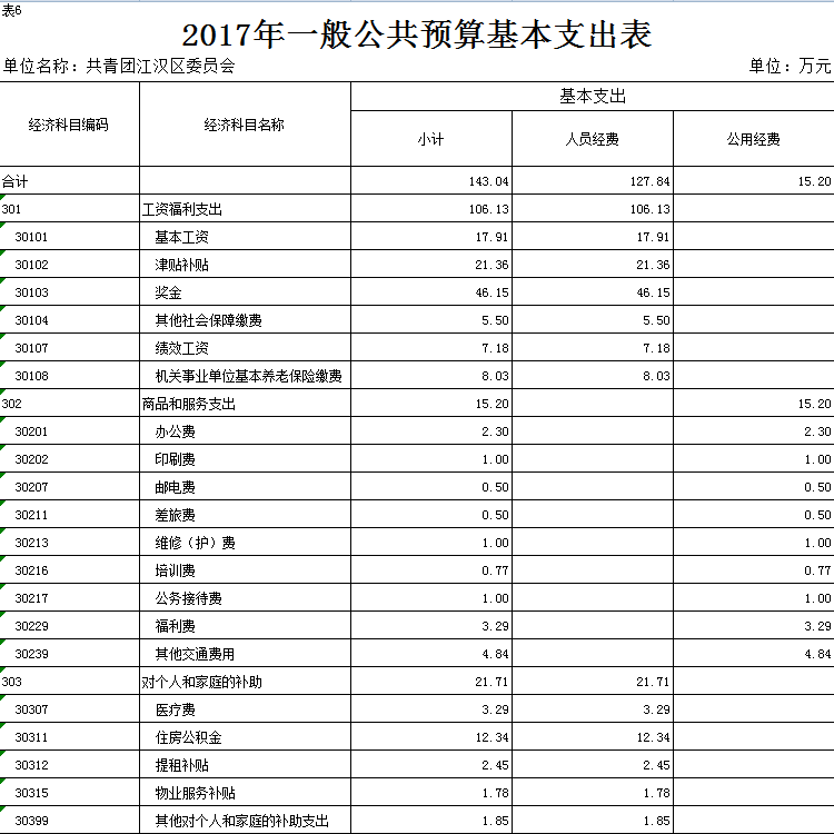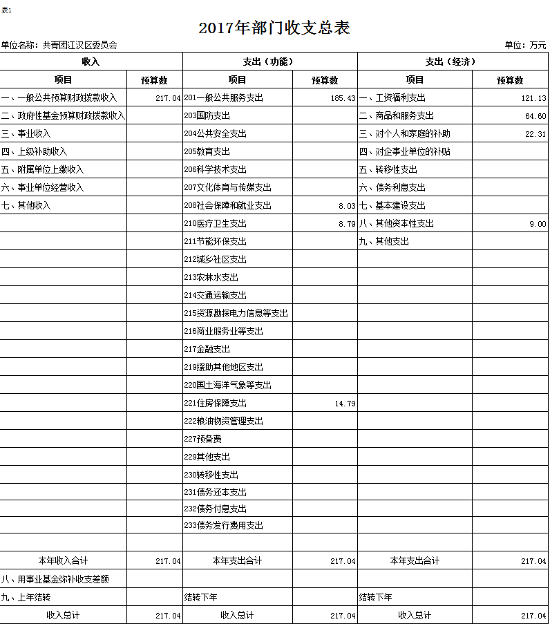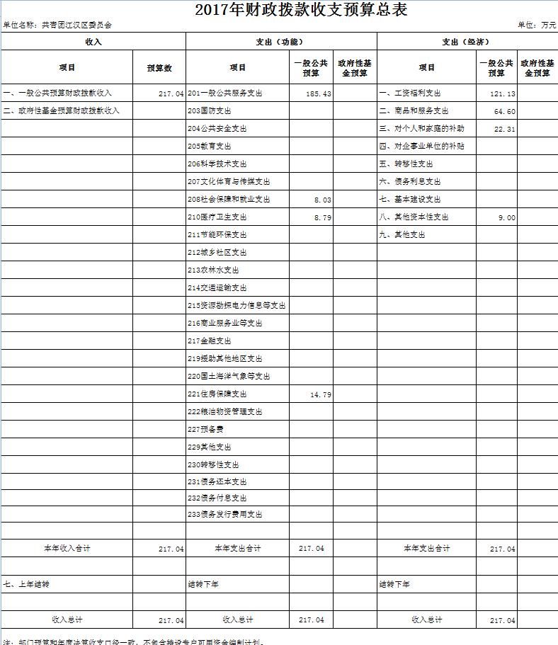 2017年江汉团区委部门预算(及“三公”经费)公开说明