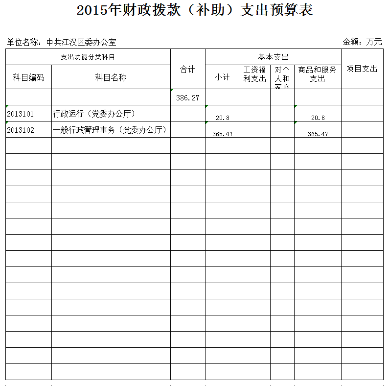 中共江汉区委办公室2015年财政拨款(补助)支出预算表