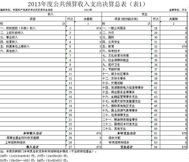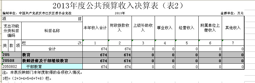 二、中国共产党武汉市江汉区委员会党校2013年度公共预算收入支出决算总表