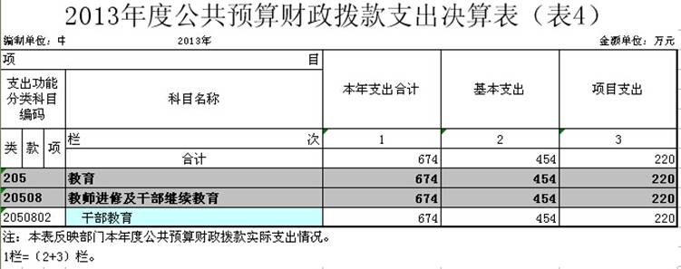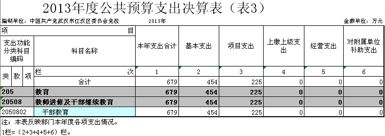 四、中国共产党武汉市江汉区委员会党校2013年度公共预算支出决算表