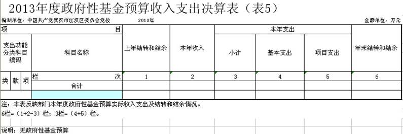 六、中国共产党武汉市江汉区委员会党校2013年度政府性基金预算收入支出决算表