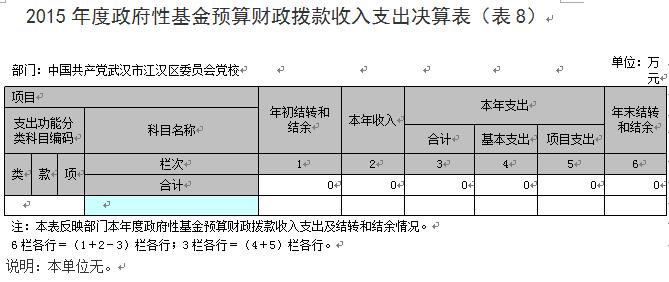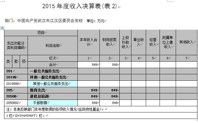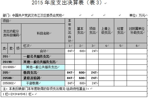 第三部分 中国共产党武汉市江汉区委员会党校2015年度部门决算表