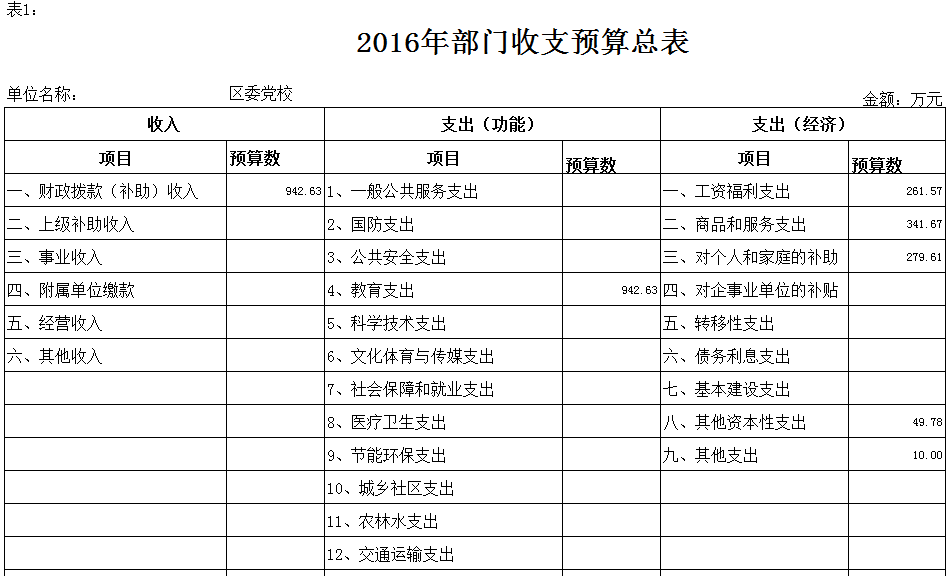 2016年部门收支预算总表